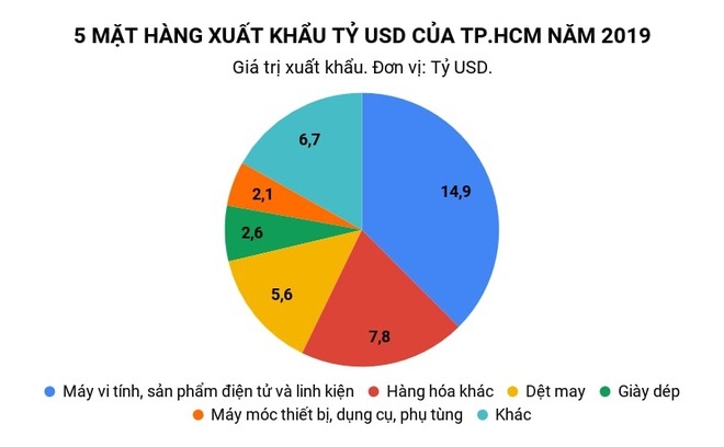 According to the Ho Chi Minh City Statistics Department, the total export turnover of the city in 2019 is estimated at 39.7 billion USD, up 17.3% over the previous year. In which, China is the largest export market with a turnover of 8.3 billion USD, up 25% compared to 2018, accounting for 21% of the export proportion.